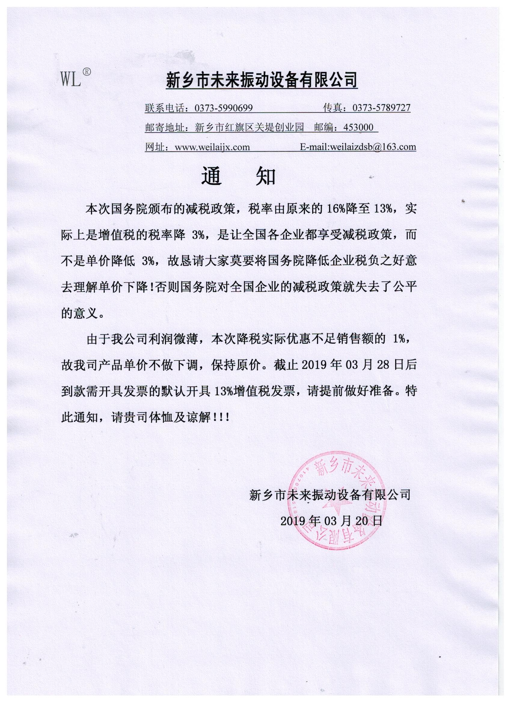 由于我公司利潤微薄,本次降稅實際優惠不足銷售額的1%,故我司產品單價不做下調,保持原價。截止2019年03月28日后到款需開具發票的默認開具13%增值稅發票,請提前做好準備。特此通知,請貴司體恤及諒解!!!